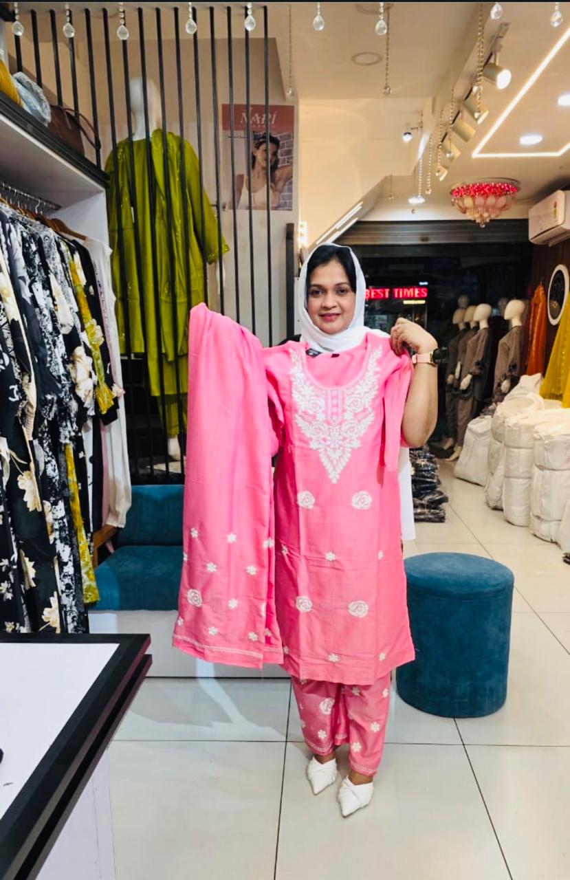 Upgrade your everyday wardrobe with this elegant Bright Pink co-ord set designed for effortless style and comfort. The straight-cut kurta is beautifully detailed with subtle white embroidery on the neckline and front, adding a refined ethnic touch without overpowering the look.